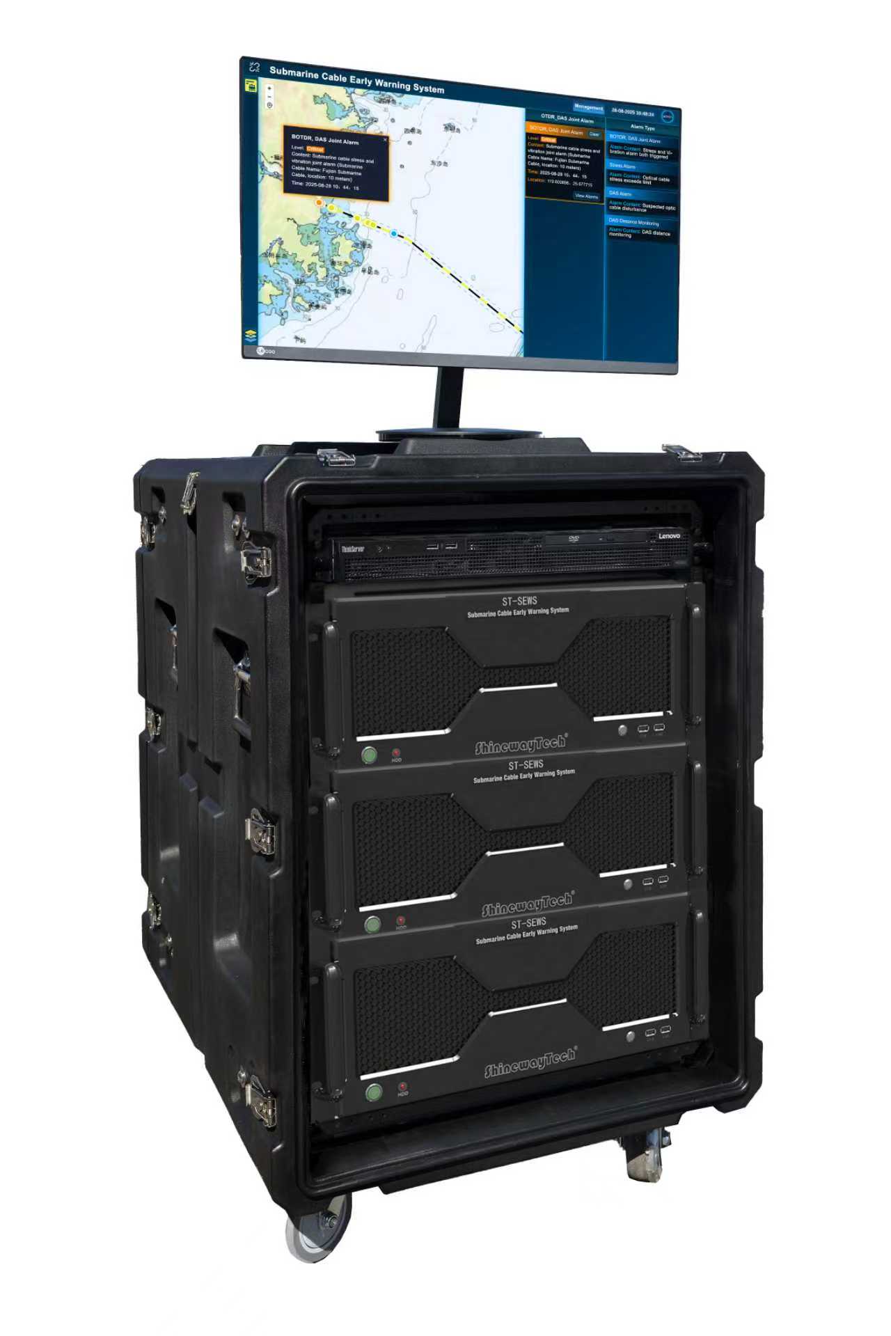 · ST-SEWS Submarine Cable Hazard Real-Time Monitoring & Early Warning System: This system covers short distance, long-haul, and ultra-long-haul submarine cable environments. It can achieve breakthrough ultra-long-distance repeatered monitoring of 10,000 km and beyond. Integrating multi-parameter alarm technology, it can perceive in real time the changes in disturbance, strain, and temperature of submarine optical cables, providing critical protection for submarine cable security.
